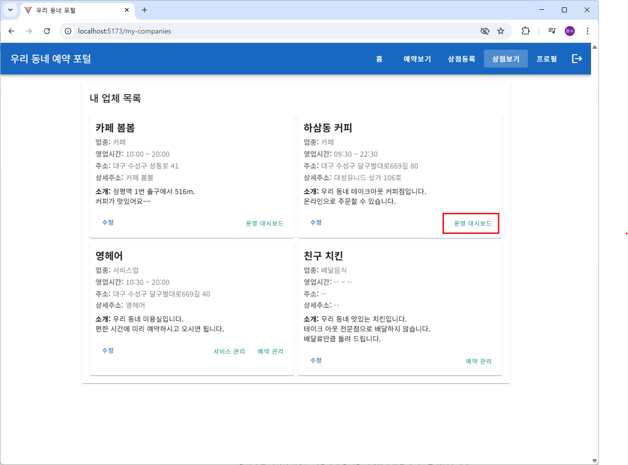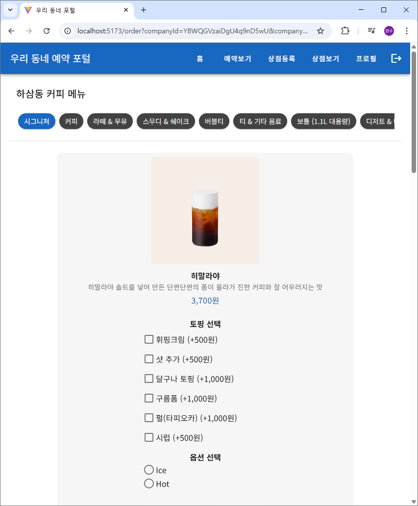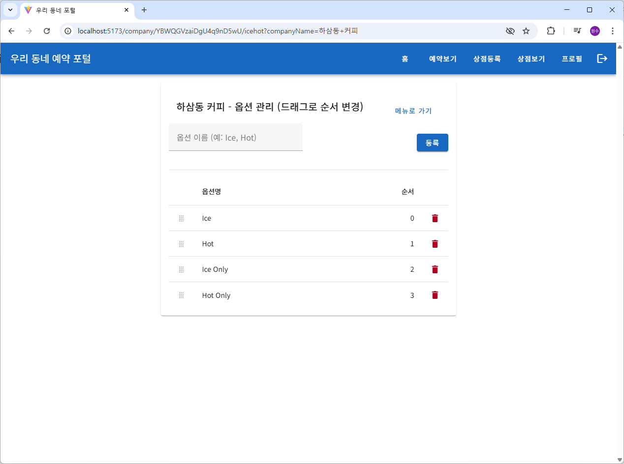 카페 메뉴 품절 관리메뉴가 품절인 경우에 대한 처리를 생각해 봅시다. 품절이 확인 되면 관리자가 우선 메뉴의 품절 상태를 설정합니다.그러면 온라인 주문 메뉴 리스트에 품절을 표시해야 합니다.품절된 품목에 대해서는 주문이 되지 않습니다. https://github.com/inetsos/downtown GitHub - inetsos/downtown: 동네 포털 - Vue 3 + Firebase동네 포털 - Vue 3 + Firebase. Contribute to inetsos/downtown development by creating an account on GitHub.github.com 운영 대시보드- src/views/OperationsDashboard.vue 운영자 대시보드 ..